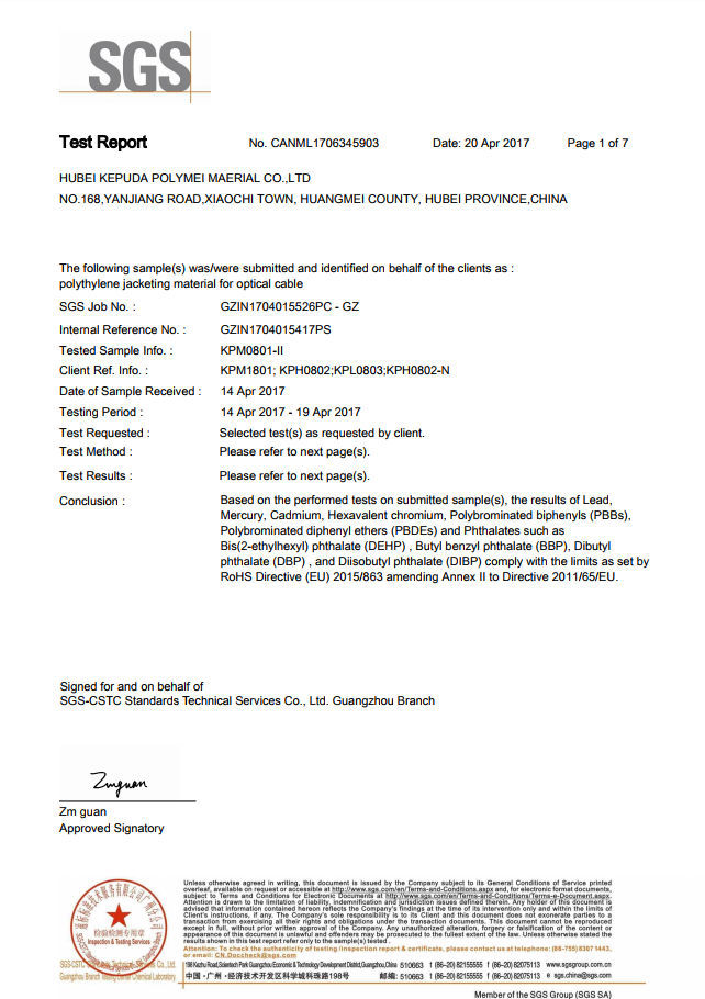 上一篇:17年聚乙烯護套料RoHS和鹵素檢測報告