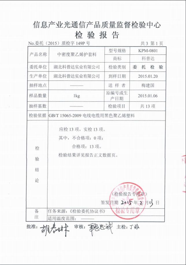 科普達(dá)產(chǎn)品主要有各種光纜護(hù)套料,榮獲湖北省名牌產(chǎn)品,守合同重信用企業(yè)。 榮獲多種國(guó)家資質(zhì)認(rèn)證包括:ISO9001質(zhì)量管理體系認(rèn)證、ISO14001環(huán)境管理體系及OHSAS18001職業(yè)健康安全管理體系認(rèn)證。...