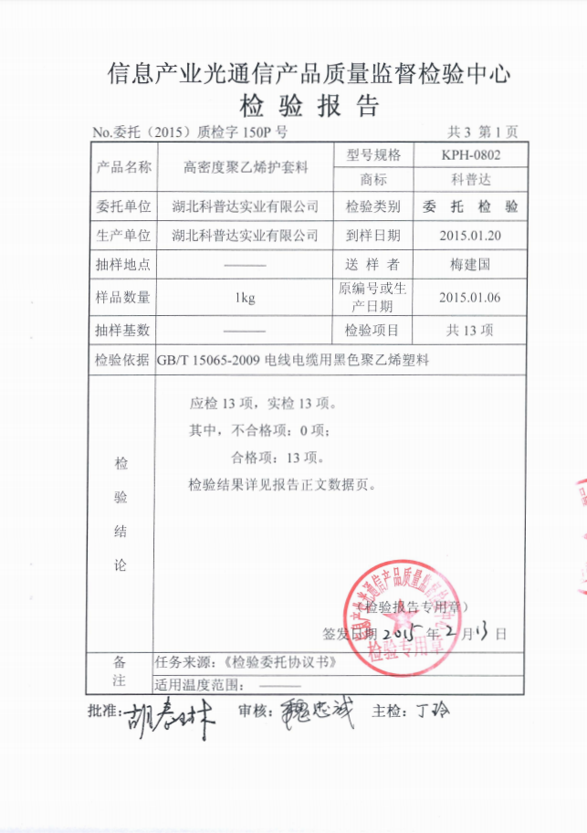 科普達產(chǎn)品主要有各種光纜護套料,榮獲湖北省名牌產(chǎn)品,守合同重信用企業(yè)。 榮獲多種國家資質(zhì)認(rèn)證包括:ISO9001質(zhì)量管理體系認(rèn)證、ISO14001環(huán)境管理體系及OHSAS18001職業(yè)健康安全管理體系認(rèn)證。...